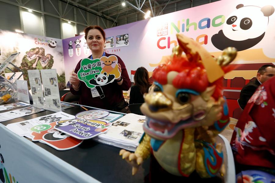 China's stand is pictured at the autumn edition of Romania's Tourism Fair in Bucharest, Romania, Nov. 22, 2024. China's stand attracted visitors at the Romania's Tourism Fair, which is held here from Nov. 21-24, as China has expanded its visa-free policy to nine additional countries including Romania, allowing their citizens to enter for up to 30 days without a visa for business, tourism, and other visits starting Nov. 30, 2024. (Photo by Cristian Cristel/Xinhua)