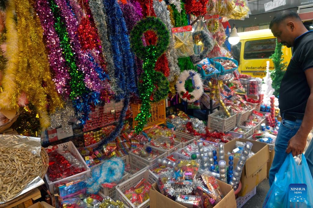 People shop for Christmas decorations at a market in Colombo, Sri Lanka on Dec. 11, 2024. (Photo by Gayan Sameera/Xinhua)