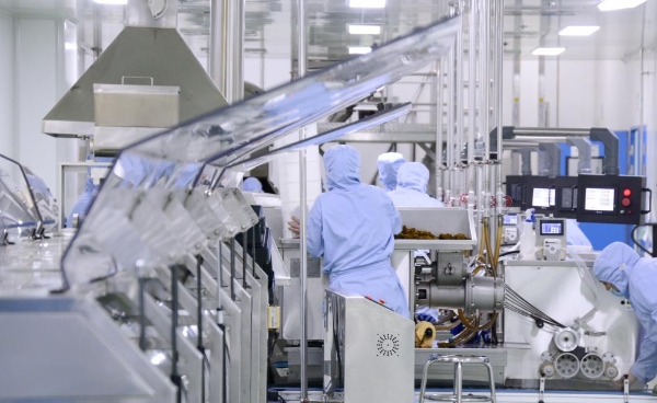 Pharmacists work at a factory of the Daxing Branch of Tong Ren Tang Technologies Co., Ltd. in Beijing, capital of China, Feb. 24, 2025. (Xinhua/Li Xin)