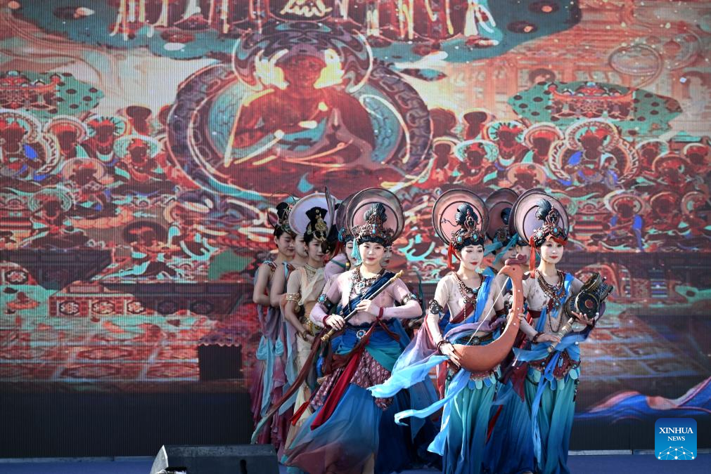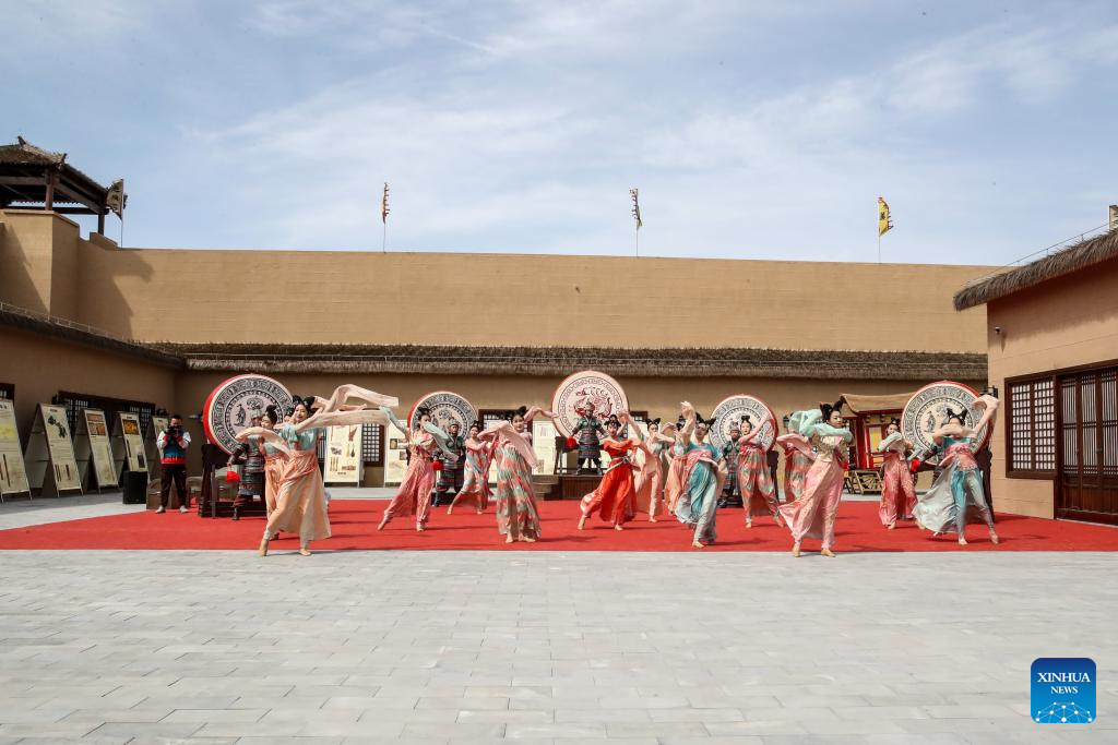 Performers dance at the opening ceremony of the ruins of Xuanquanzhi in Dunhuang, northwest China's Gansu Province, April 29, 2025. Two major archaeological sites along the ancient Silk Road opened to the public in northwest China on Thursday, the first day of the May Day holiday, offering new choices for travelers keen to explore the exchanges between Eastern and Western civilizations over a millennium ago. (Xinhua/Lang Bingbing)