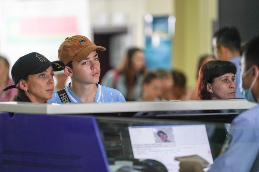 Russians wait for clearance at a pass in the city of Heihe, northeast China's Heilongjiang Province, Aug. 11, 2023. (Xinhua/Wang Song)