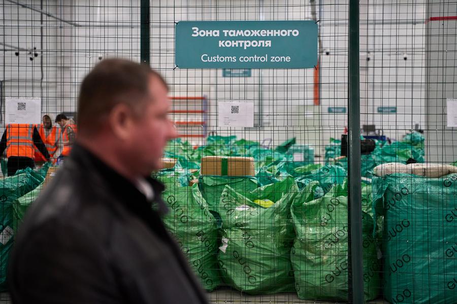 Goods from China are pictured at a warehouse in the Kanikurgan Customs and Logistics Terminal in Blagoveshchensk, Russia, March 21, 2025. (Photo by Guo Feizhou/Xinhua)