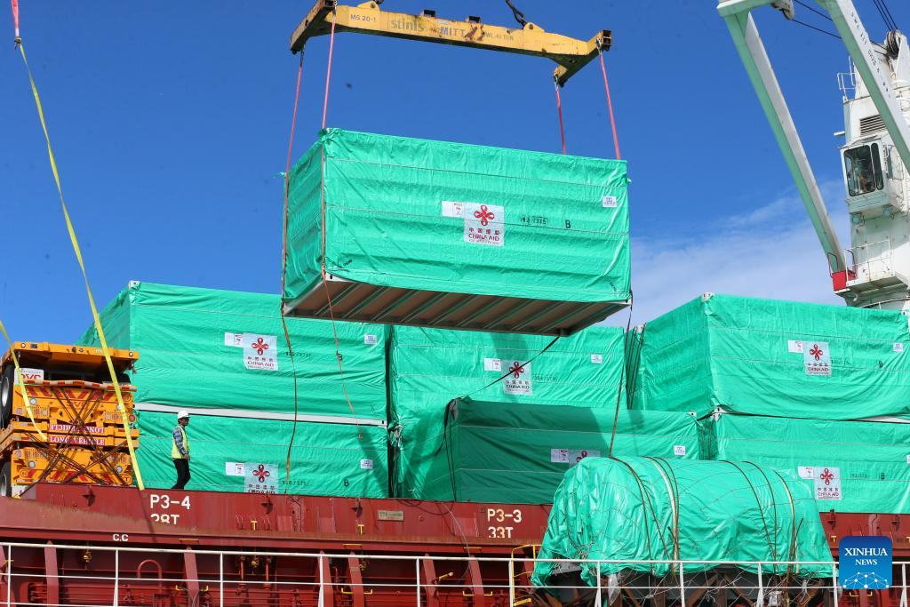 This photo taken on May 14, 2025 shows the 14th batch of emergency humanitarian in-kind assistance dispatched by the Chinese government in Yangon, Myanmar. The 14th batch of emergency humanitarian in-kind assistance dispatched by the Chinese government was handed over to Myanmar on Wednesday. A 7.9-magnitude earthquake struck Myanmar on March 28. As of May 13, the earthquake has claimed around 3,800 lives and injured over 5,100 people, with 85 others remaining unaccounted for, according to official data. (Xinhua/Myo Kyaw Soe)
