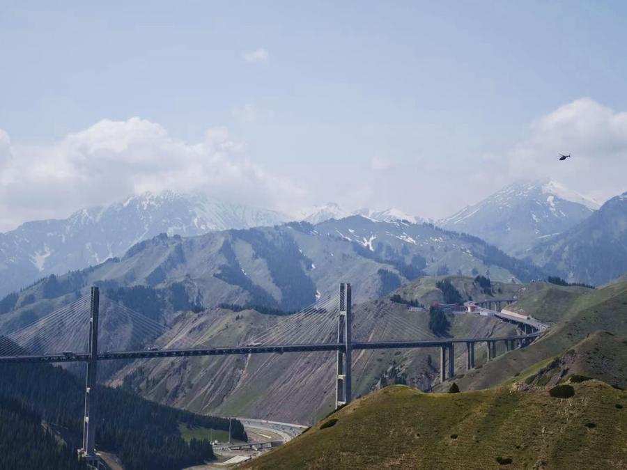 I felt a gentle tremble as I climbed onto the viewing platform, partly because I was underdressed and partly due to the awe-inspiring view. From the distant snow-capped peaks to the green canyon below, and the majestic Guozigou Bridge in between, the breathtaking mountain scenery stretched as far as the eye could see.