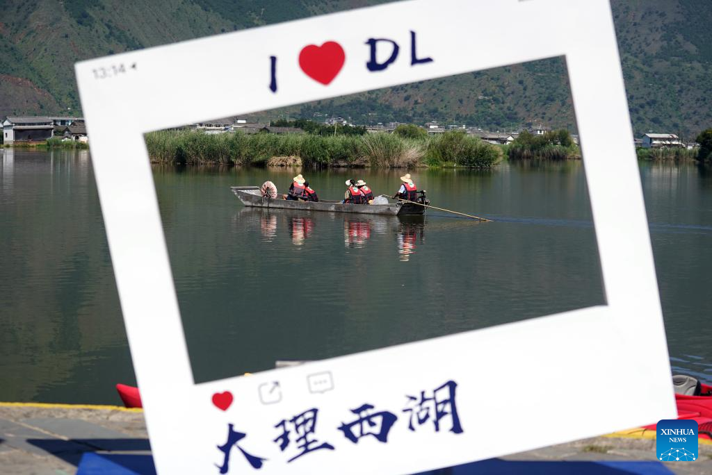 Tourists take a boat in Xihu wetland park in Eryuan County, Dali Bai Autonomous Prefecture, southwest China's Yunnan Province, July 29, 2025. (Photo by Liang Zhiqiang/Xinhua)