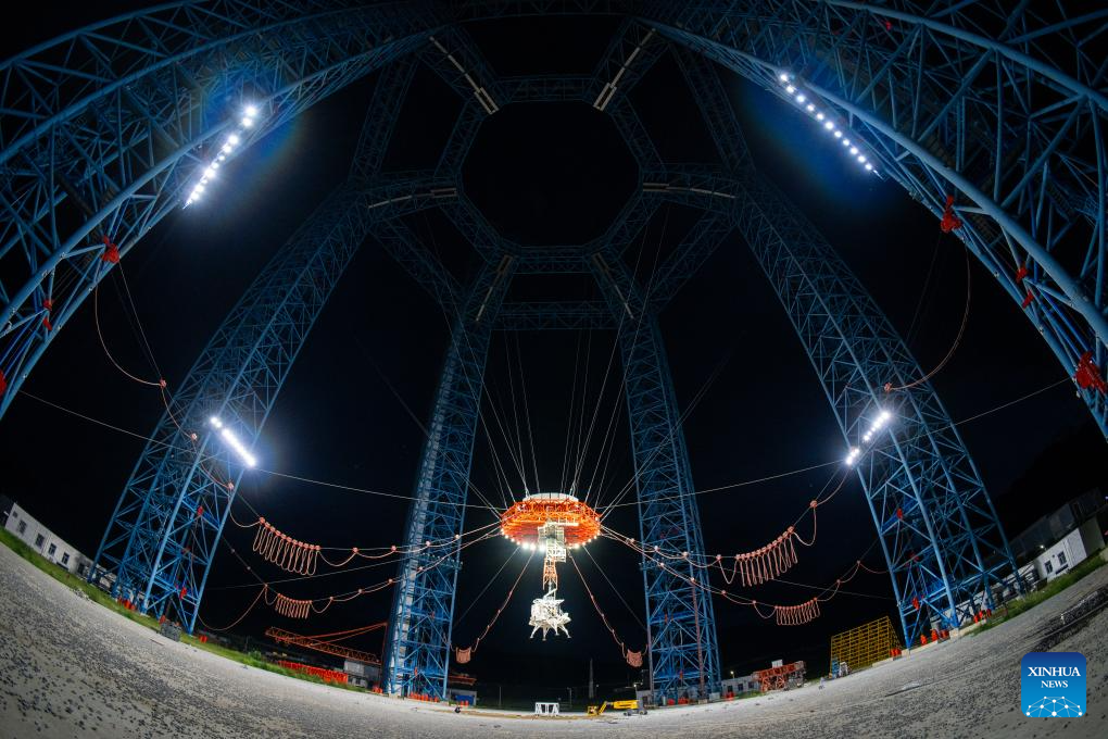 The test completed on Wednesday represents a key step in the development of China's manned lunar exploration program, and it also marks the first time that China has carried out a test for extraterrestrial landing and takeoff of a manned spacecraft, said the China Manned Space Agency. (Photo by Han Qingce/Xinhua)