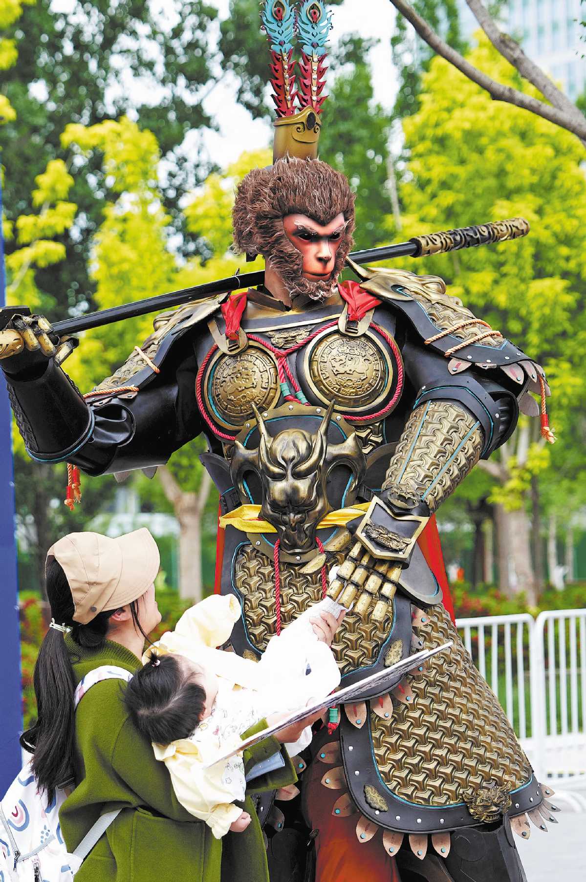A cosplayer imitates the main character of the game Black Myth: Wukong in Beijing. ZHANG XIANGYI/CHINA NEWS SERVICE