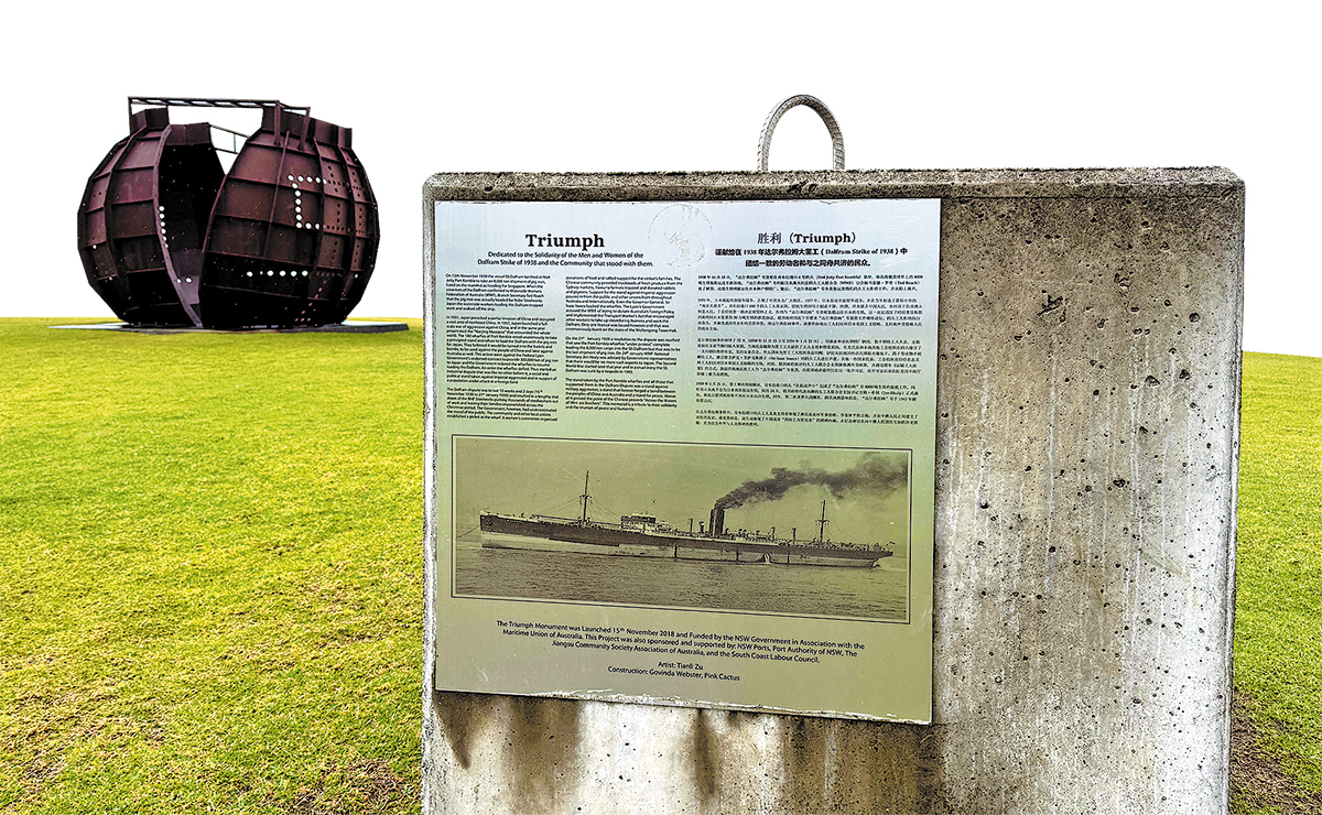 The Triumph monument, erected on Nov 15, 2018, and funded by the NSW government in association with the Maritime Union of Australia, commemorates the Dalfram Dispute at Port Kembla in Wollongong, Australia. Xin Xin/China Daily