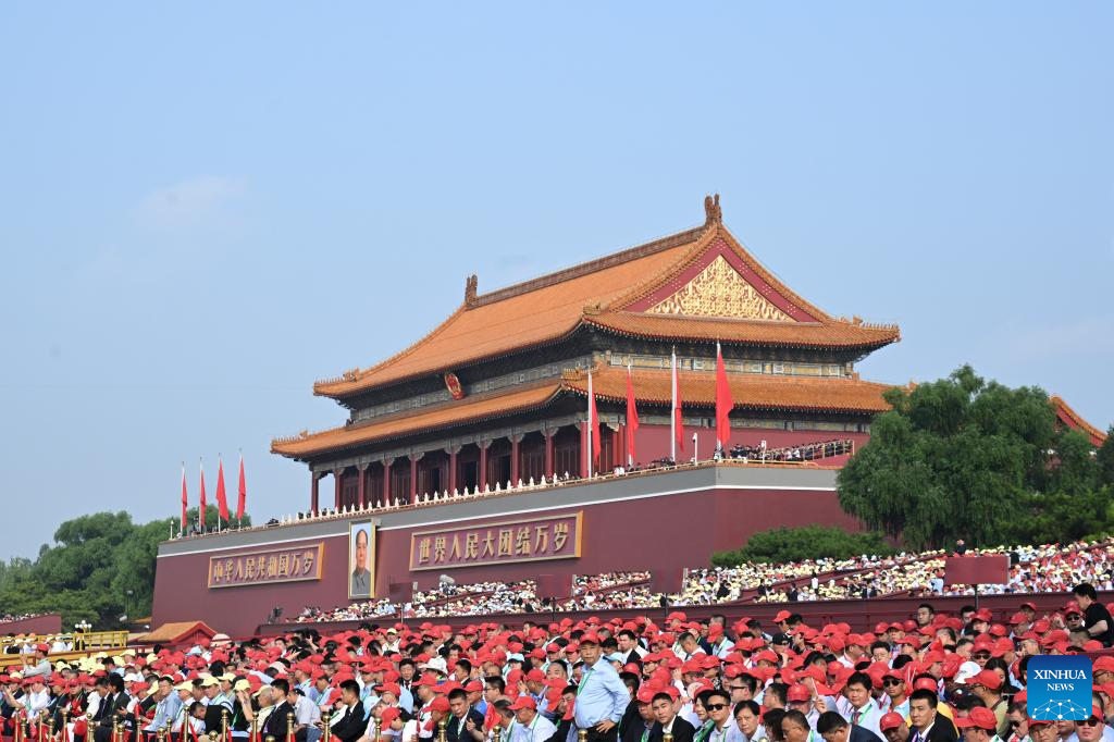 A grand gathering to commemorate the 80th anniversary of the victory in the Chinese People's War of Resistance against Japanese Aggression and the World Anti-Fascist War starts at Tian'anmen Square in Beijing, capital of China, Sept. 3, 2025. (Xinhua/Zhu Zheng)