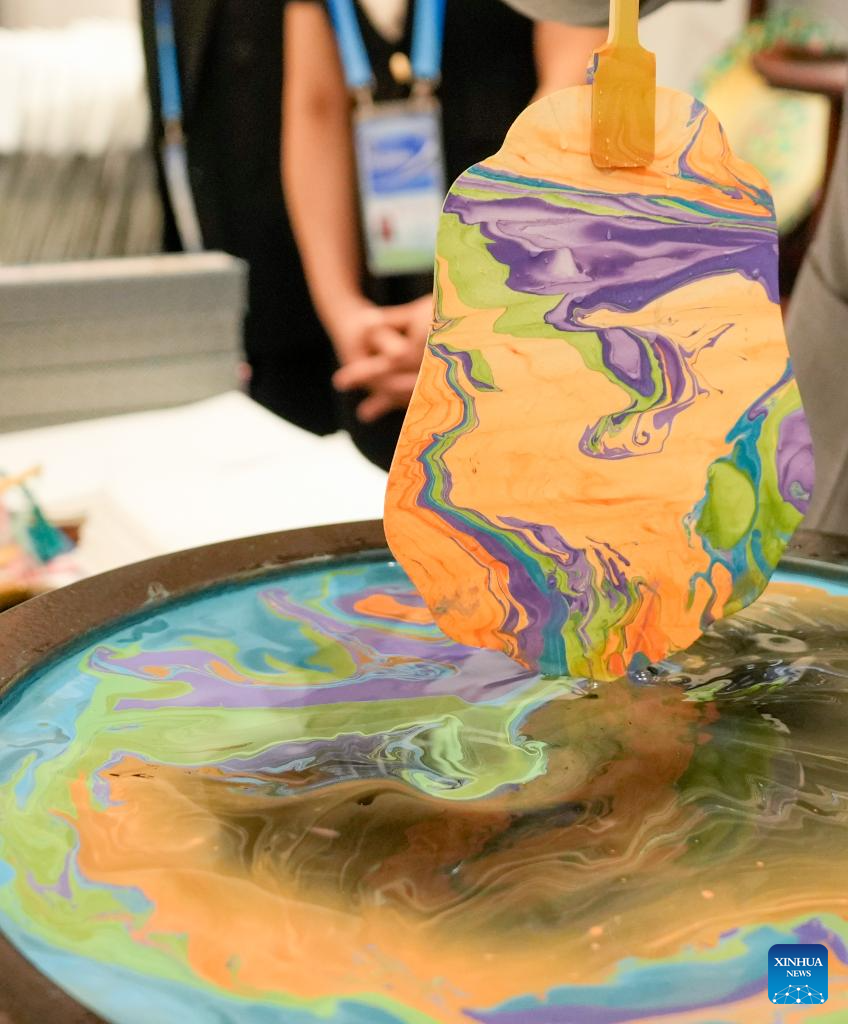 Before the banquet, the guests watched and experienced China's intangible cultural heritages, having friendly exchanges in a harmonious atmosphere. (Xinhua/Bi Xiaoyang)