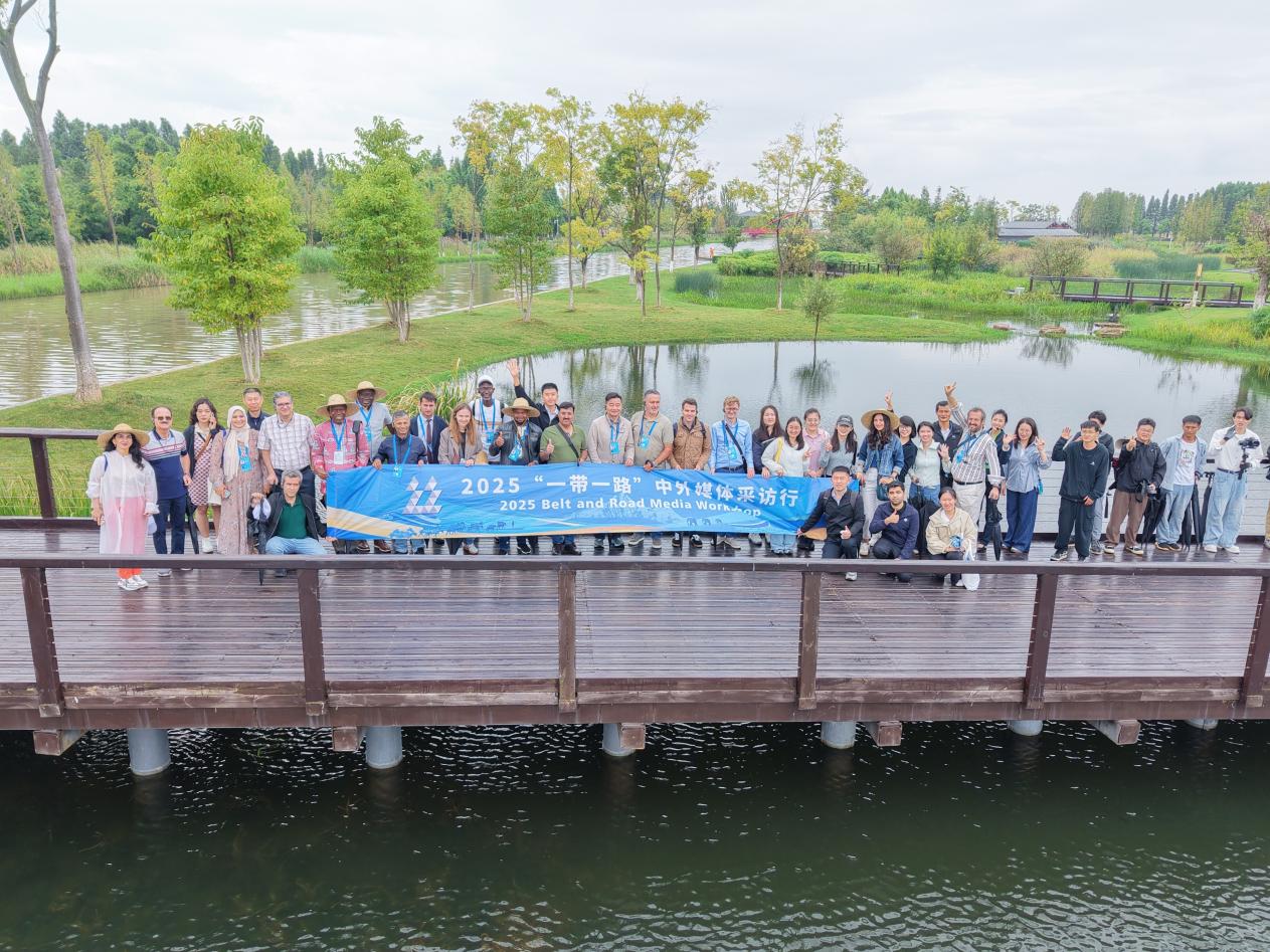 Foreign media representatives assemble in the Baofeng wetland during the 2025 Belt and Road Media Workshop in Kunming, Yunnan Province, on Thursday, September 18, 2025. (Photo: People's Daily)