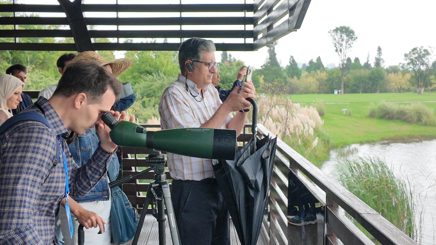 Foreign media representatives scope the Baofeng wetland in Kunming, Yunnan Province, on Thursday, September 18, 2025. (Photo: People's Daily/Zhan Huilan)