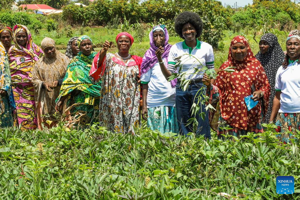 Rachel Yaoudam (4th R) poses for a group photo with members of her organization during an agricultural training session in a field in Ngaoundere, Adamawa Region, Cameroon, on Oct. 7, 2025. (Xinhua/Kepseu)