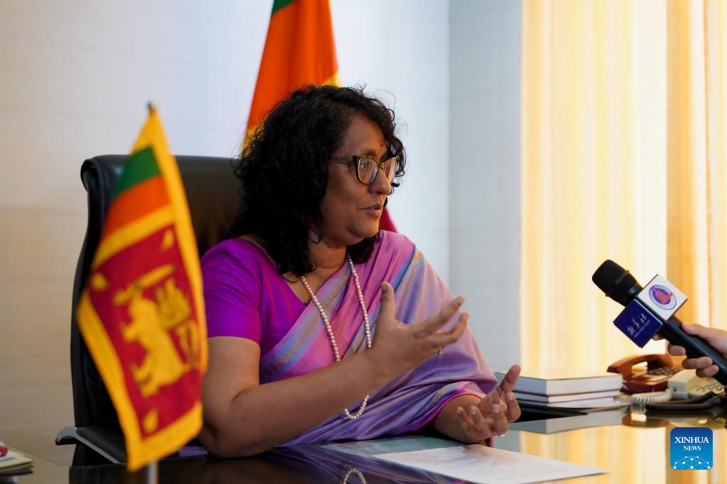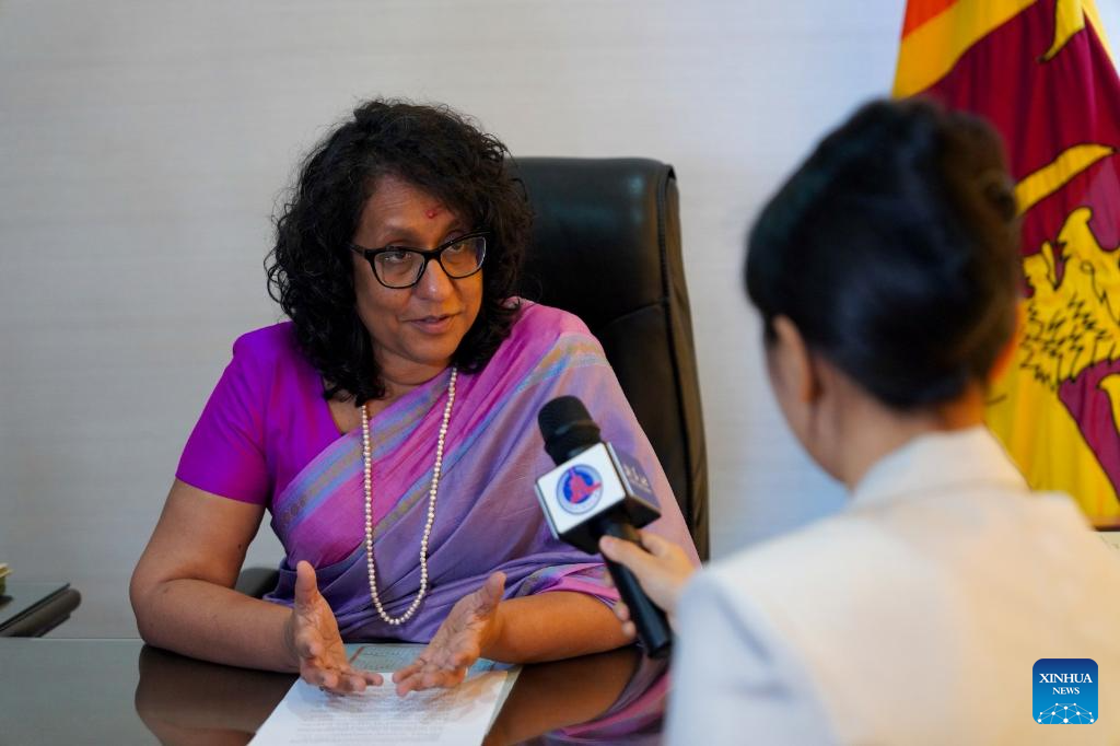 Sri Lankan Prime Minister Harini Amarasuriya speaks during an exclusive interview with Xinhua ahead of her visit to China for the Global Leaders' Meeting on Women in Kotte, Sri Lanka, Oct. 9, 2025. (Xinhua/Wu Yue)