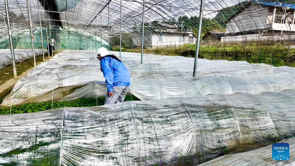 A worker works at a wasabi base in Weixin County, southwest China's Yunnan Province, Oct. 23, 2025. (Xinhua/Wang Xiansi)