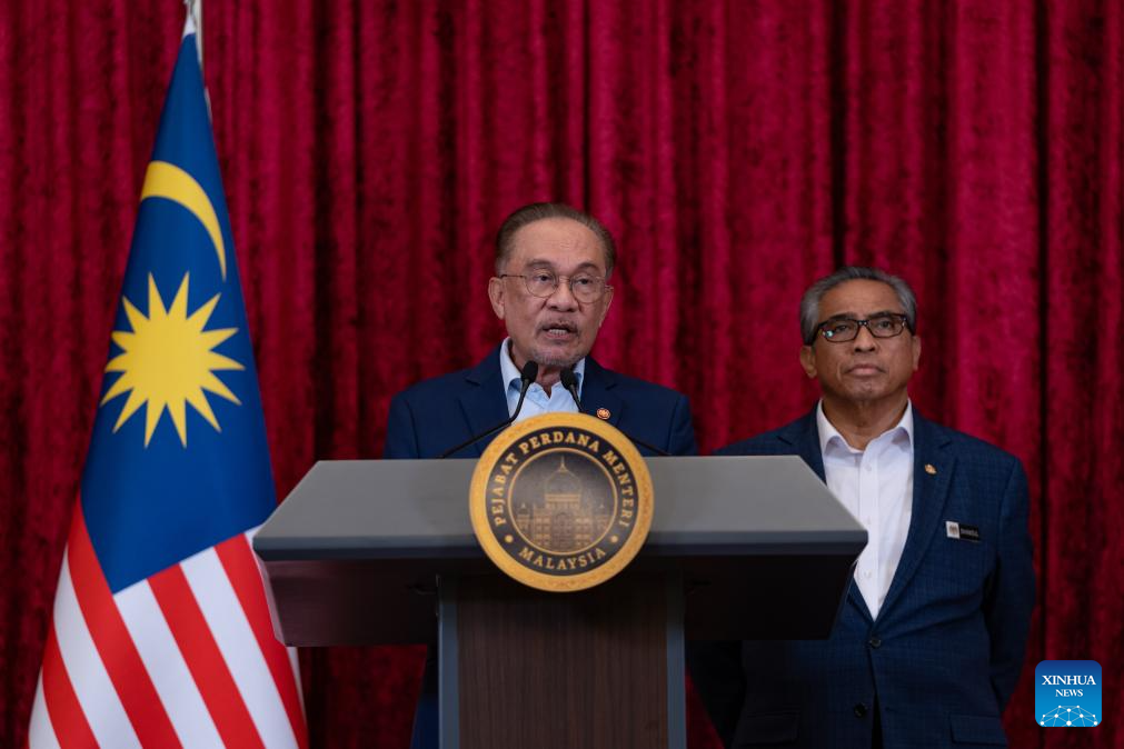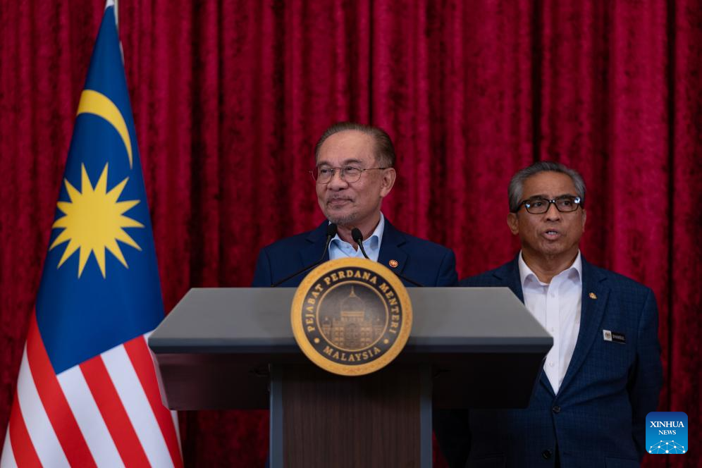 Malaysian Prime Minister Anwar Ibrahim (front) attends a press conference in Putrajaya, Malaysia, Dec. 16, 2025. Anwar unveiled new ministerial appointments on Tuesday as part of a cabinet reshuffle. (Prime Minister's Office of Malaysia/Handout via Xinhua)