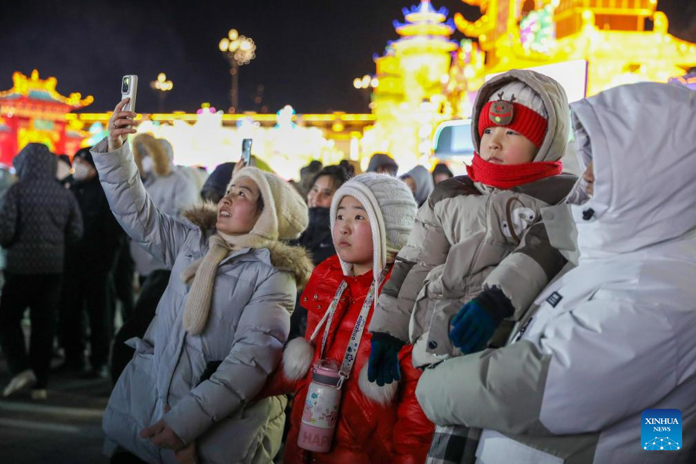 Tourists visit a light festival in Horqin Right Wing Front Banner, Hinggan League, north China's Inner Mongolia Autonomous Region, Dec. 20, 2025. A light festival kicked off here on Saturday, attracting many people to come and enjoy various illuminated installations. (Xinhua)