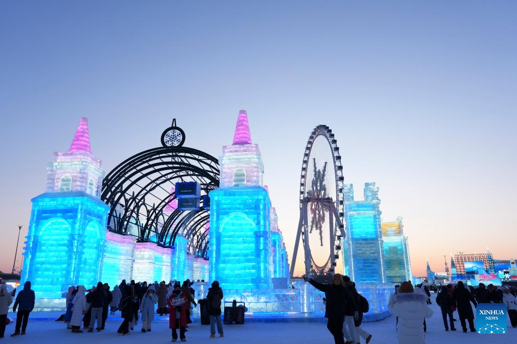 People visit the Harbin Ice-Snow World in Harbin, northeast China's Heilongjiang Province, Jan. 5, 2026. The 42nd Harbin International Ice and Snow Festival kicked off at the Harbin Ice-Snow World here on Monday. (Xinhua/Wang Jianwei)