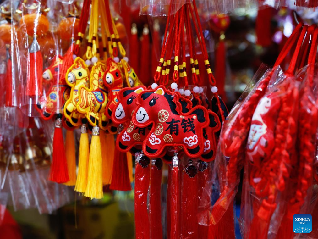 This photo taken on Feb. 11, 2026 shows Chinese New Year decorations at a shop in Chinatown of Yangon, Myanmar. (Xinhua/Myo Kyaw Soe)
