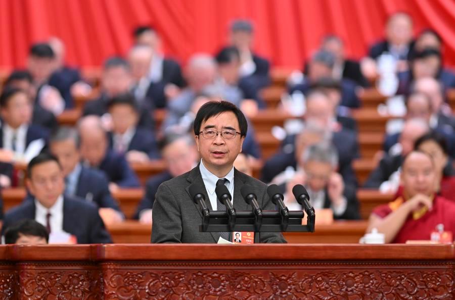 Pan Jianwei, a member of the 14th National Committee of the Chinese People's Political Consultative Conference (CPPCC), speaks on behalf of the Central Committee of Jiusan Society at the third plenary meeting of the fourth session of the 14th CPPCC National Committee at the Great Hall of the People in Beijing, capital of China, March 8, 2026. (Xinhua/Zhang Ling)