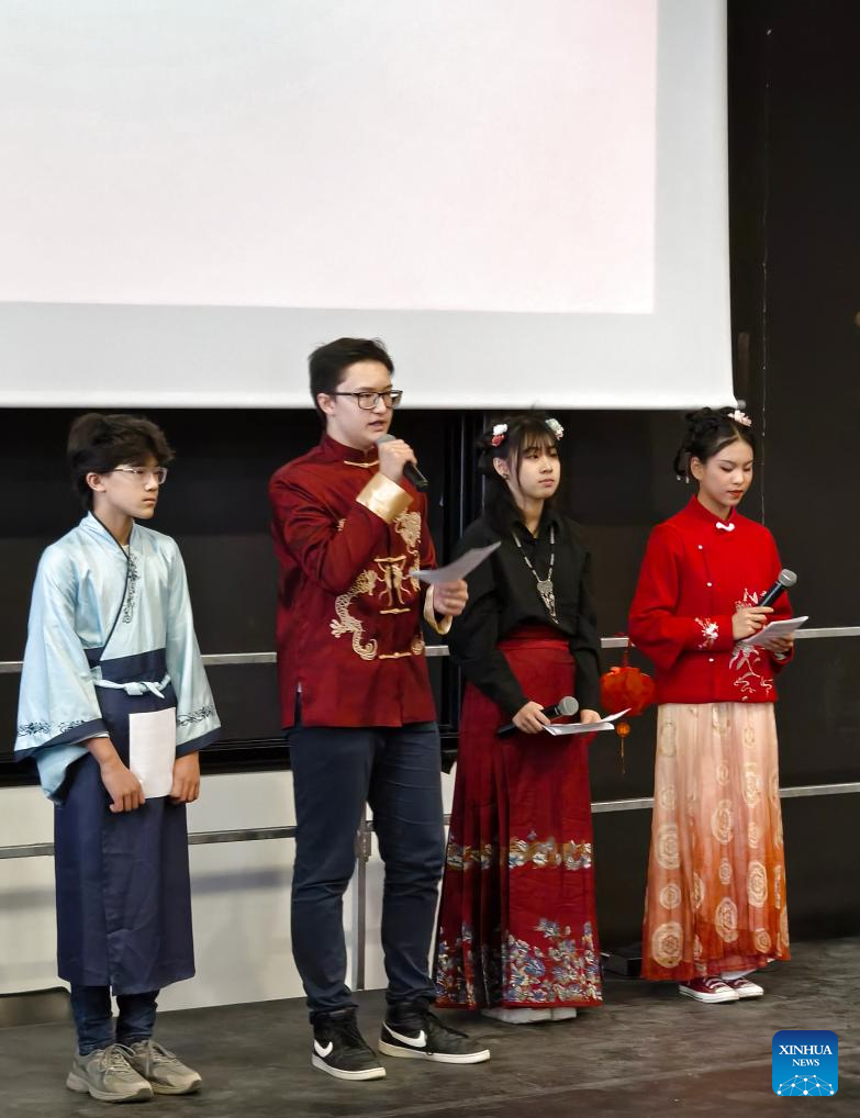 Students of the Provence-Alpes-Cote d'Azur International School perform during a Spring Festival activity in Manosque, France, Feb. 5, 2026. Chinese President Xi Jinping recently replied to a letter from teachers and students of the Chinese language class at the Provence-Alpes-Cote d'Azur International School in France, extending his best wishes to them as well as all the teachers and students of the school. (Xinhua)