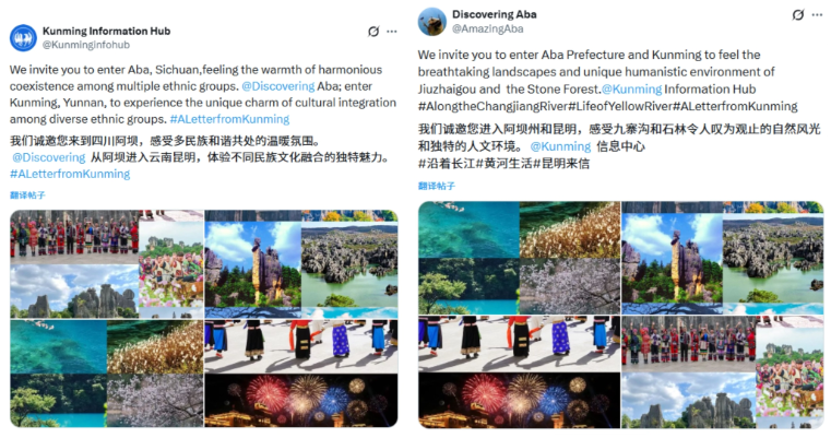 Screenshot of the targeted collaboration between Kunming International Communication Center and Aba International Communication Center on "Ethnic Customs and Landscapes."