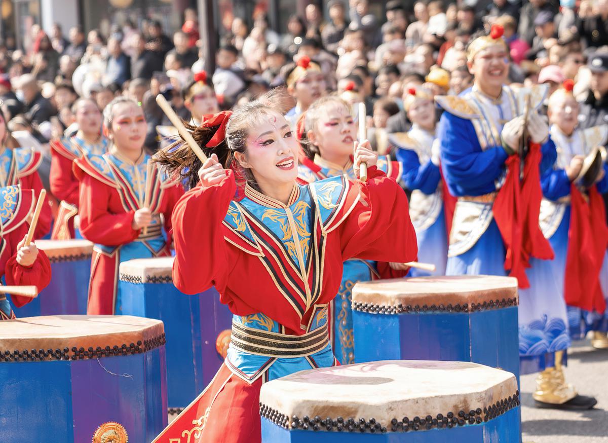 Drummers give a lively show on the streets of Zhengding county in Shijiazhuang, Hebei province, on March 15, 2026. [Photo by Wu Zhiwei/For chinadaily.com.cn]