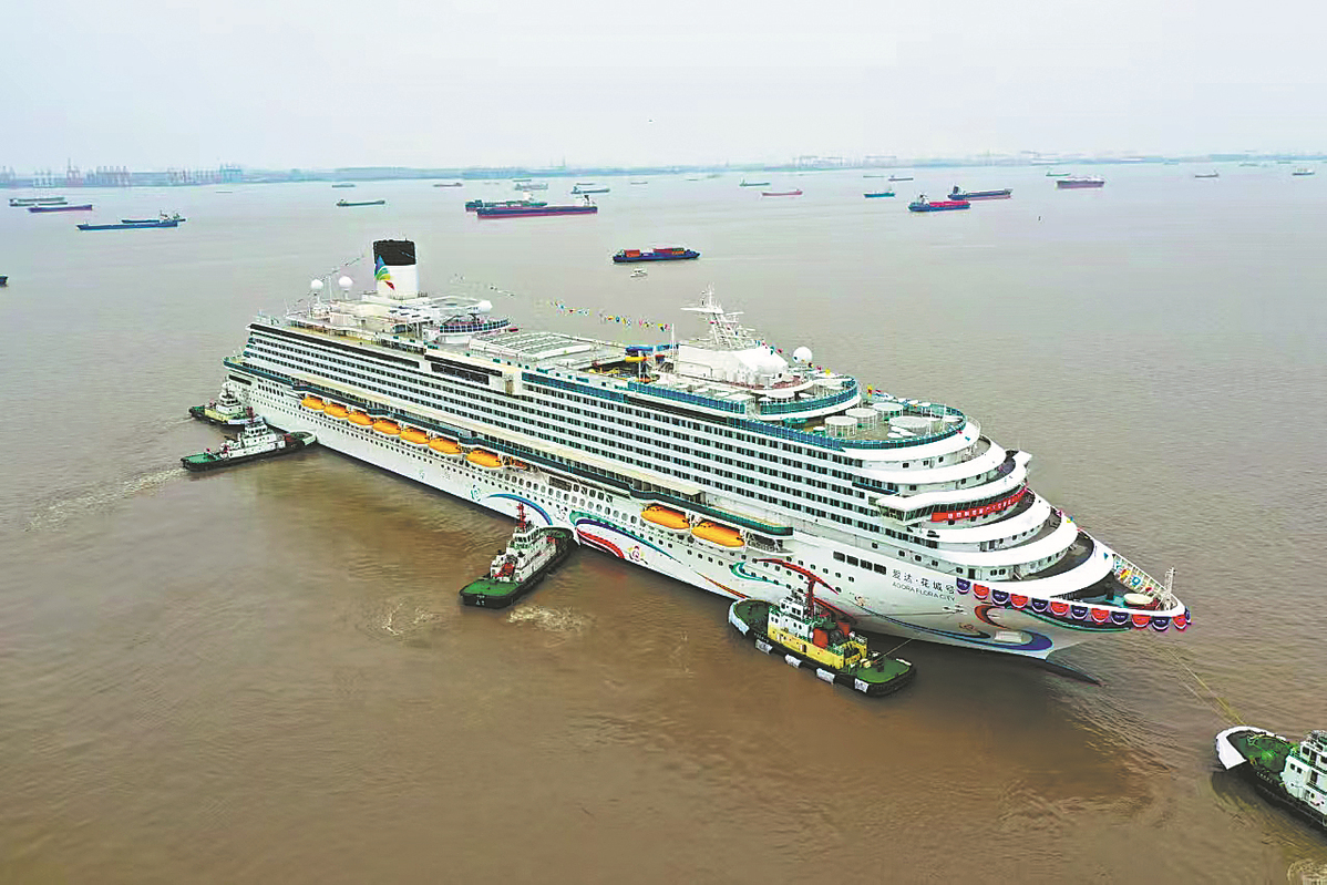 The Chinese-built large cruise ship, named Adora Flora City, will depart from Guangzhou for its five-night maiden voyage. [Photo provided to China Daily]