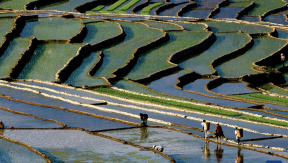 Villagers work in terraced fields in Ganluo County, southwest China's Sichuan Province, April 18, 2026.