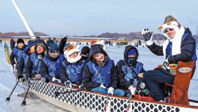 The frozen Songhua River in Harbin, Heilongjiang province, came alive with the sound of drums and the rhythmic clanging of ice picks, as nearly 200 members of ice dragon boat teams vigorously struck the icy surface to move forward, drawing enthusiastic cheers ...