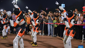 Robots dance in Fuzhou, southeast China's Fujian Province, April 19, 2026.