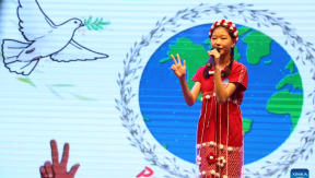 Children gathered at the China Cultural Center in Yangon on Sunday for the final round of the 9th Chinese Language recitation competition, showcasing their language skills and confidence on stage.