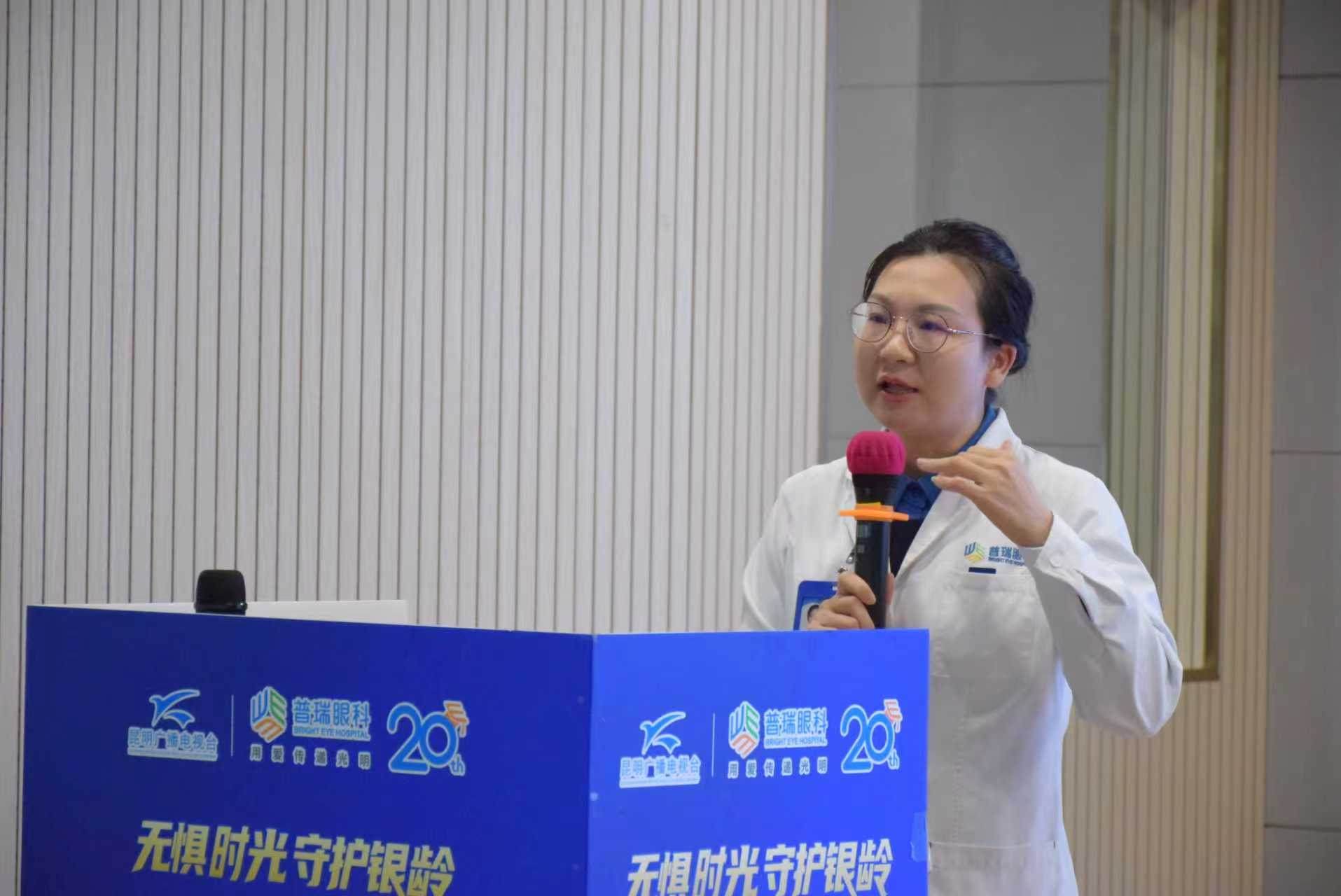 活动现场暖意融融,昆明普瑞眼科医院白内障手术专家叶霭娴受邀出席,针对中老年群体高发的白内障问题展开专业眼健康科普。叶霭娴结合临床案例,用通俗易懂的语言讲解白内障的成因、症状发展及诊疗要点,耐心解答现场长辈提出的“看不清是不是一定得等白内障‘熟了’再治”“手术会不会有风险”等疑问,消除大家对眼病治疗的顾虑,让科学护眼知识深入人心。