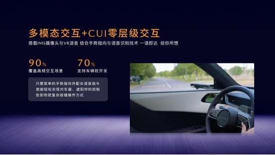 在智能交互领域,EZ-60“所指即所控”的多模态交互,让用户只需指向遮阳帘、车窗等部件,说出相应指令,即可实现精准控制;一语即达的CUI零层级交互覆盖90%高频场景,用户只需说出指令,车机便能迅速响应,无需繁琐操作;车外配备4颗独立麦克风和声纹识别技术,在地库等嘈杂环境下,指令识别率超95%,让科技时代的用车便利性“张口”可及。