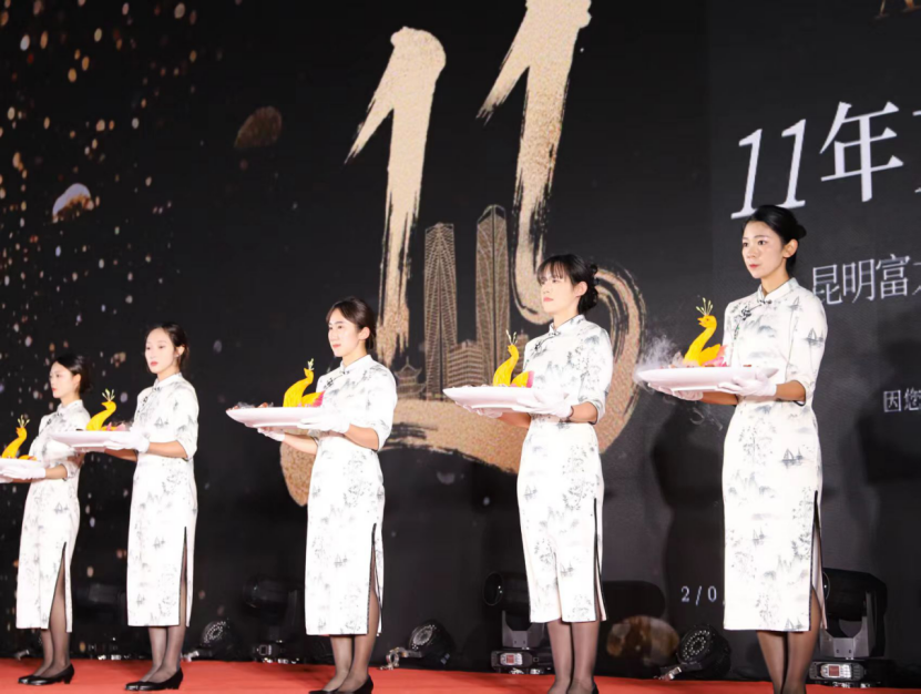 2025年10月31日,昆明富力万达文华酒店灯火辉煌,嘉宾云集。酒店十一周年庆典晚宴在豪华无柱式大宴会厅隆重举行,酒店管理层、长期合作的合作伙伴及忠实客户近百人齐聚一堂,共同见证这一重要时刻。这不仅是一场庆典,更是酒店对十一年来支持其发展的各界朋友的答谢会。