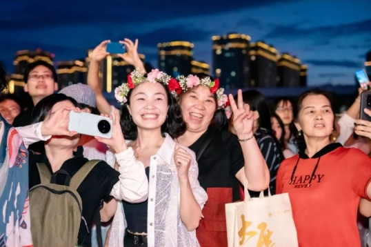 ▲游客、市民前来俊发·新螺蛳湾国际商贸城外广场参加火把节,留下精彩的瞬间。