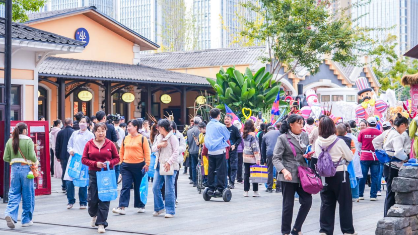 除了购物消费,滇忆465历史文化街区的文化体验项目也吸引了大量家庭游客。1:1复刻的米轨小火车成为亲子游的最大亮点。俊尚峰业主陈晨女士带着女儿坐上小火车,一边游览一边向孩子介绍街区的云南文化元素。“新螺蛳湾给我最大的惊喜就是,它早已不再是记忆中的批发市场,而是咱们昆明人最大的‘生活秀场’。”陈晨说道。