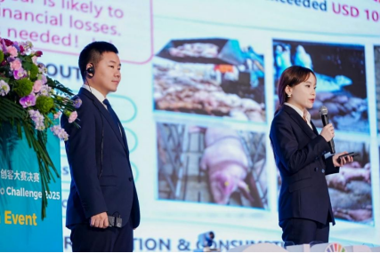 ▲2025年全球农创客大赛上,中国参赛队伍正在介绍自研的AI养猪方案。傅俊豪|摄