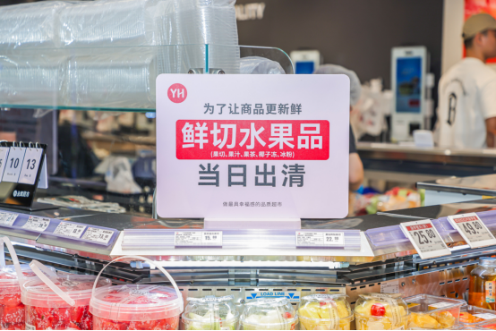 生鲜板块是此次调改的重点。门店引进定向种植蔬菜,推广包装化、标准化的净菜与果切,提升卫生与便利性。此外,新增果切、鲜榨果汁等趋势品类,并严格执行“468鲜度管理原则”——果切超4小时八折、6小时六折、8小时下架,叶菜、肉禽、水产等部分商品也实施日清折价,杜绝隔夜销售。