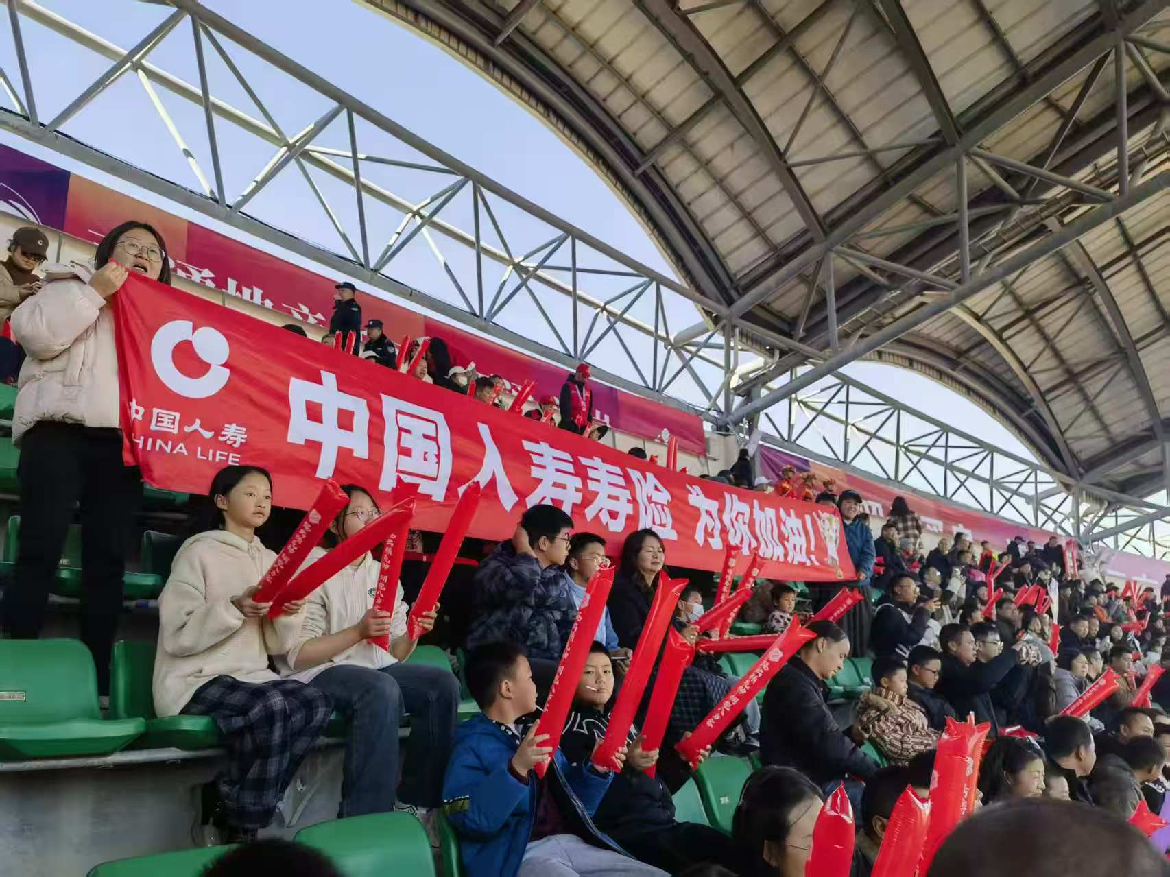 当天下午,昭阳区元宝山体育场人潮涌动、车水马龙,现场人员近2万人次。中国人寿昭通分公司的展区前人来人往,“牛犇犇”成了“打卡王”,深受欢迎;在检票口,中国人寿的logo及企业文化跃然于上,映入每一名进场市民眼帘,极大增强了品牌影响力;赛场内耀眼的红色横幅“中国人寿寿险 为你加油”和舞动的司旗,让看台上的观众都感受到了中国人寿助威方阵的热情,加油声持续雷动,为球员们呐喊助威。