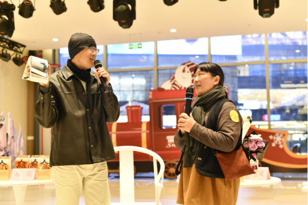 分享会现场洋溢着温暖与互动的气息。活动特别邀请到本次投稿作者中年纪最小的一位——6岁的小朋友上台,分享他画作中的天真想象与创作心得,稚嫩而真诚的表达打动了许多观众。此外,还有专程从重庆赶来的汤海涛的学生,她表示“能够亲眼看到自己的作品从电子屏幕走向纸质页面,是一种难以言喻的感动”,这也正是本次日历从策划到成书所希望传递的仪式感与实体温度。