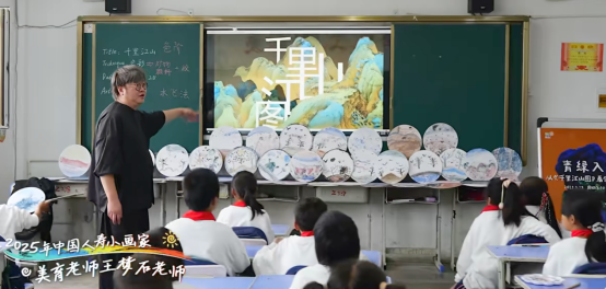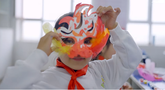 “《千里江山图》里青山的颜色,其实来自矿物颜料哦!”甘肃临夏州积石山保安族东乡族撒拉族自治县前岭小学的课堂上,老师的话音刚落,孩子们便迫不及待地围上来,指尖轻轻蹭过石青、石绿颜料。这堂从传世名画延伸的美术课,不仅教孩子们调色施彩,更让他们触摸到传统文化中“多一分则浊,少一分则薄”的细腻美感。前岭小学的另一节美术课上,老师拿着三星堆面具模型,和孩子们开起“面具故事会”。从面具的起源,到不同文化中面具的符号意义,孩子们循着历史脉络展开想象,把对传统文化的理解画进自己设计的面具里。