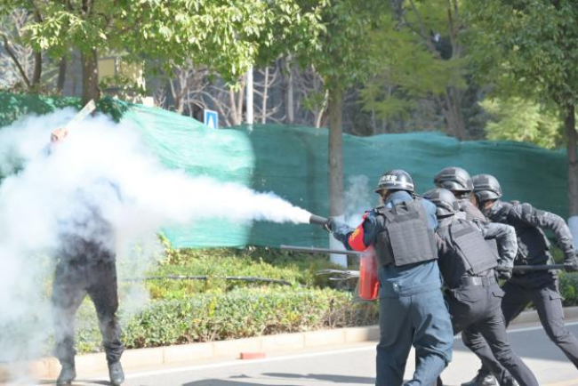 专题分享环节,省消防救援总队防火处刘彬、省市场监管局罗绍林、昆明市公安局五华分局王飞、昆明理工大学王海瑞等专家,分别围绕医院消防、特种设备安全、警医联动、AI安防应用等展开交流。会议还组织了“云阜智盾”系统讲解、消防联动演示及公安应急处突演练,直观展现人防、物防、技防协同效能。