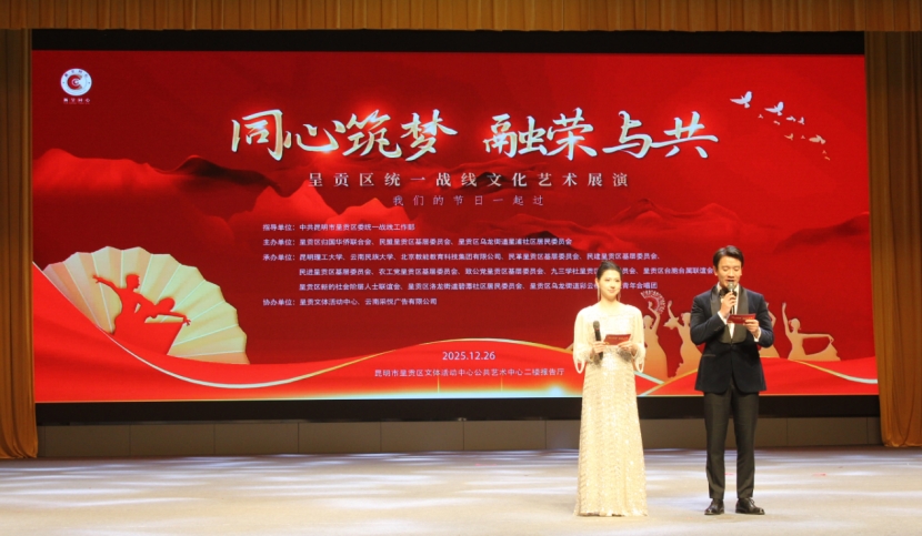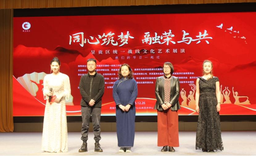 昆明信息港讯 2025年12月26日,冬日暖阳映初心,同心筑梦谱新篇。呈贡统一战线“同心筑梦,融荣与共”文化艺术展演活动在呈贡文体活动中心隆重举行。本次活动由中共昆明市呈贡区委统一战线工作部指导,呈贡区归国华侨联合会、民盟呈贡区基层委员会、呈贡区乌龙街道星浦社区居民委员会联合主办。
