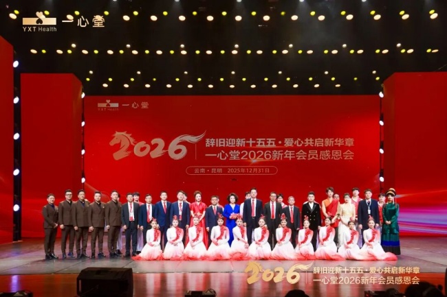 昆明信息港讯 2025年12月31日,“辞旧迎新十五五・爱心共启新华章”一心堂2026新年会员感恩会在昆明隆重举行并圆满落幕。恰逢“健康中国”战略深化与“十五五”规划开局的关键节点,这场盛会不仅是企业与会员共迎新年的温情之约,更是一心堂药业集团响应国家号召、回馈社会信任的生动实践,1500余名全国各地会员代表、行业伙伴及政府部门嘉宾齐聚一堂,共同见证企业深耕健康事业的责任与温度。