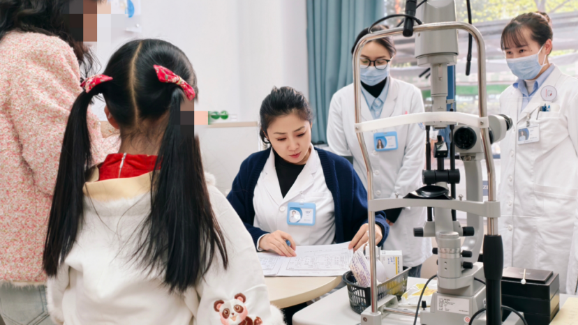 科普讲座结束后,侯静梅带领专业医护团队为现场每一位孩子提供了眼健康专项检查,涵盖裸眼视力检测、电脑验光、眼压检查、裂隙灯检查、眼轴检测等多个项目。验光师细致地为孩子们进行全面的视力评估,详细记录眼部发育情况,并为每个孩子建立了基础眼健康档案。对于检查中发现的视力问题,侯主任逐一与家长沟通,耐心解读检查结果,提供个性化的护眼建议和干预方案,提醒家长关注青少年视力发育关键期,定期带孩子进行视力检查,做到近视早发现、早干预、早矫正。