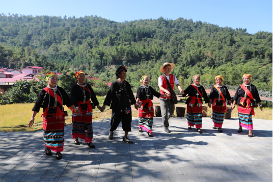 图:刘圣伟(右4)与当地村民共唱幸福歌