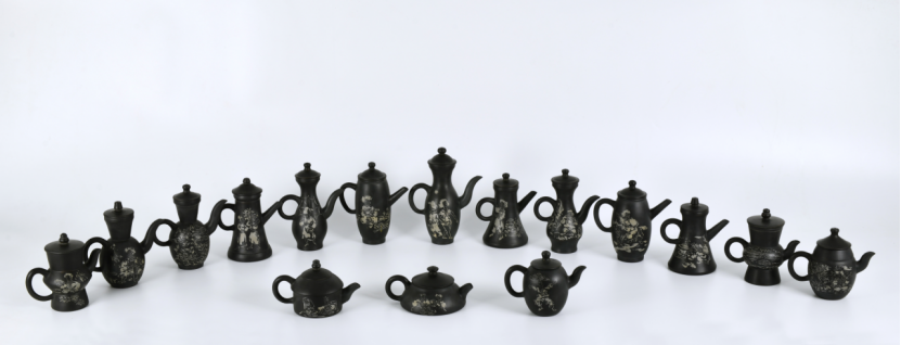 壶体装饰则以全新国画形式演绎“云南十八怪”。苏亭羽在调研基础上,删去不合时宜的旧“怪”,增补“紫陶可做首饰戴”“水草煮吃叫海菜”“头顶碗盘称跳菜”等新“怪”,使作品既保留传统韵味,又体现时代精神。2018年,《哈尼壶》系列获云南省第十二届工艺美术博览会“工美杯”金奖。