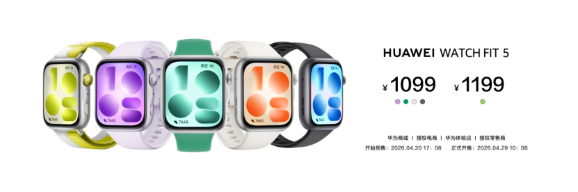 2026年4月20日,华为正式推出HUAWEI WATCH FIT 5系列,以全新的时尚设计与进阶的运动健康功能,成为用户融合多元时尚表达、运动乐趣探索与全天候健康监测的腕上生活搭档。