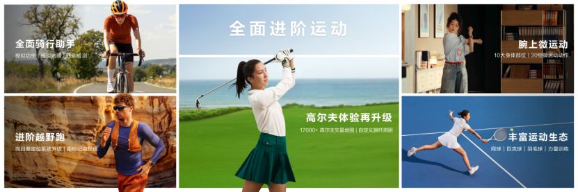 同时,HUAWEI WATCH FIT 5系列也是一位户外运动搭档。骑行时自动识别状态,实时显示模拟骑行功率、踏频等专业数据,帮助用户更直观地了解骑行表现。HUAWEI WATCH FIT 5 Pro更面向专业户外场景深度赋能,越野跑支持分段导航、海拔趋势与完赛预估,帮助用户轻松掌握复杂地形;高尔夫爱好者可享全球1.7万+球场矢量地图,果岭视图随用户第一视角自动旋转,让用户精准把握每一次挥杆。